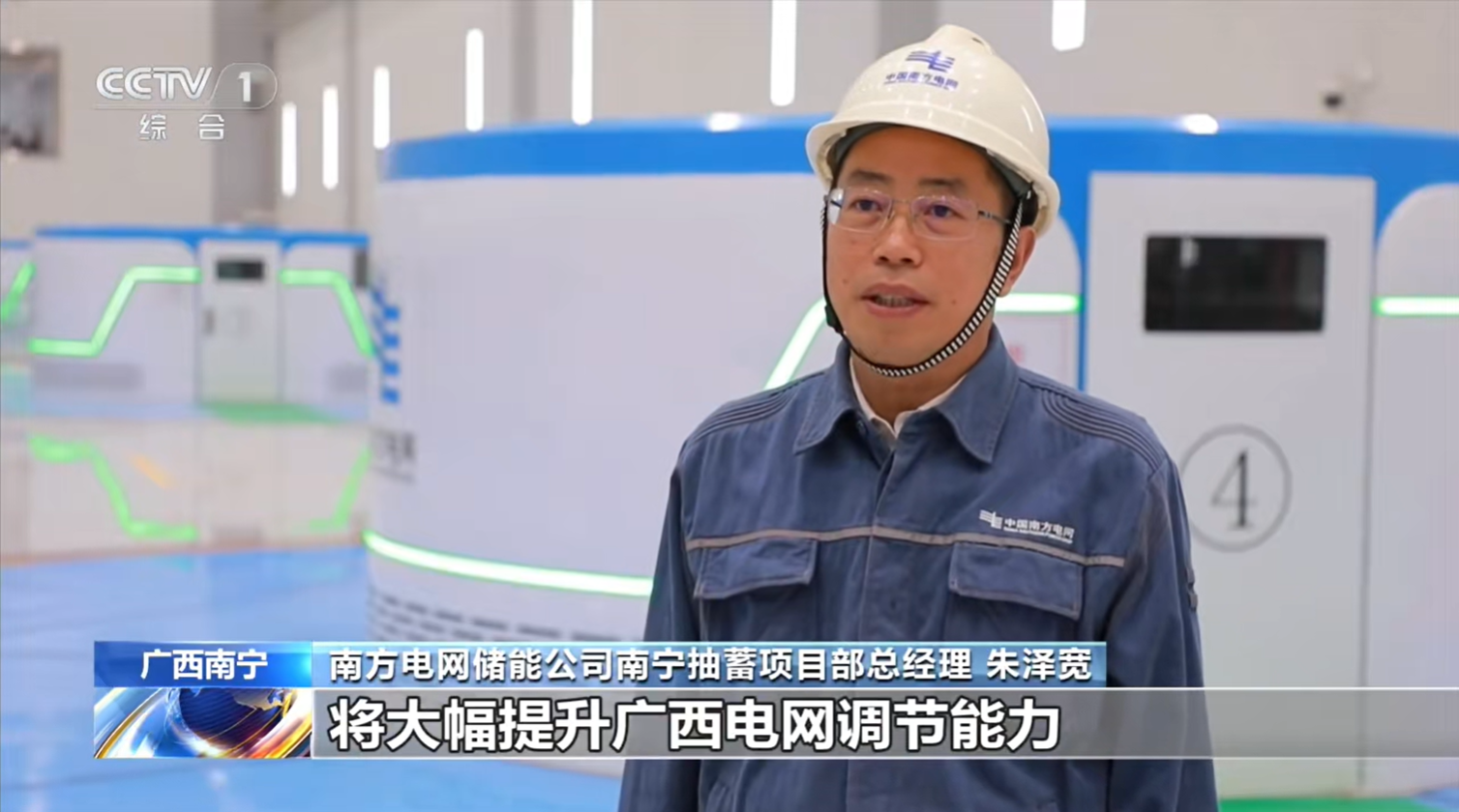 南方电网储能公司南宁抽蓄项目部总经理 朱泽宽:该电站建成投运后,将大幅提升广西电网调节能力,为广西清洁能源消纳提供有力支撑,每年最多可消纳清洁能源25亿度,相应减少二氧化碳排放220万吨。
