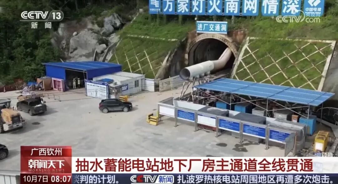 10月7日,央视朝闻天下8点段推出《广西钦州 抽水蓄能电站地下厂房主通道全线贯通》。报道讲述国庆中秋假期,钦州抽蓄850多名建设者同时推进30多项施工任务,达到厂房主通道全线贯通里程碑节点,介绍钦州抽蓄在促进广西经济社会发展全面绿色转型的促进作用。
